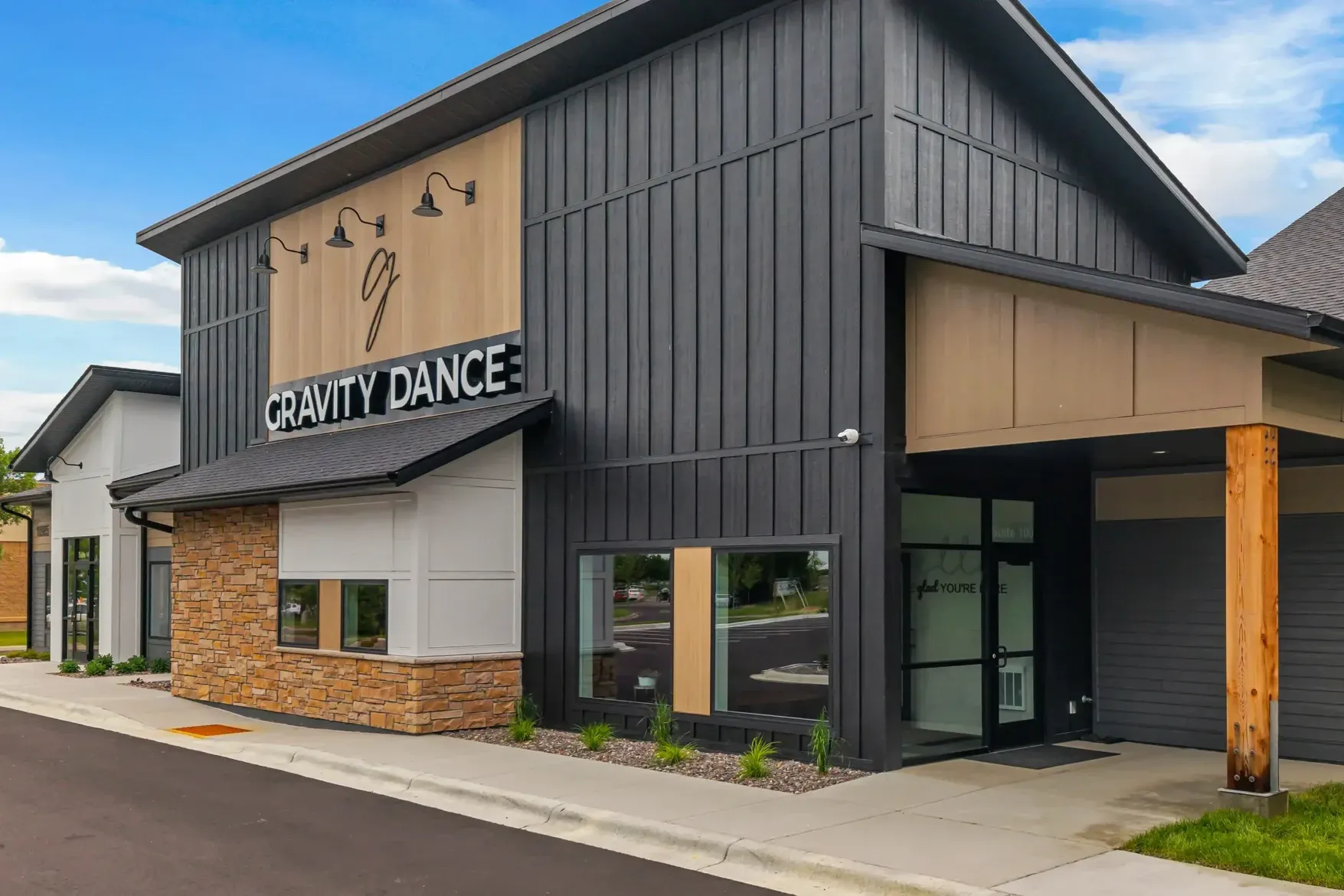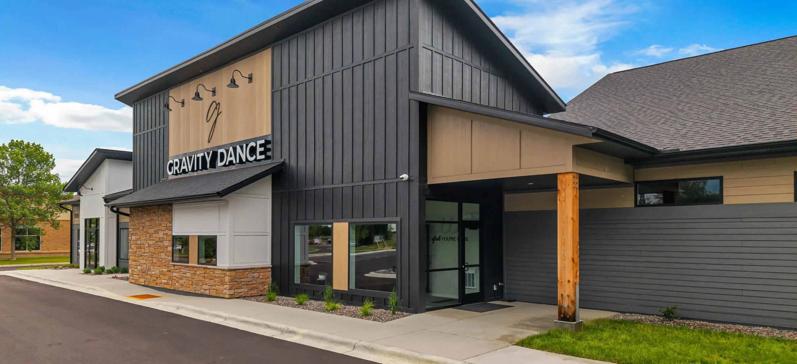 After outgrowing their nearby facility, Gravity Dance partnered with Axys to bring their vision for a purpose-built home to life. Through a collaborative design-build process, the new building was tailored to their programming needs while also incorporating additional tenant space. Continued growth during construction ultimately led the studio to expand into the additional square footage upon completion.